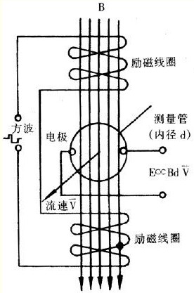 电磁流量计测量原理乃基于法拉第电磁 感应定律。流量计的测量管是一内衬绝缘材料的非导磁合金短管。两只电极沿管径方向穿通管壁固定的在测量管上,其电极头与衬里内表面基本齐平。励磁线圈 向方波脉冲励磁时,将在与测量管轴线垂直的方向上产生一磁通量密度为 B 的工作磁场。此时,如果具有一定电导率的流体流经测量管,将切割磁力线感应 出电动势 E。电动势 E 正比于磁通量密度 B、测量管内径 d 与平均流速 V 的乘积控制工程网版权所有 ,电动势 E(流量信号)由电极检出并通过电缆送至转换器。转换器将流量信号放大处理后,可显示流量、总量,并能输出脉冲、模拟电流等信号,用于流量的控制或调节。