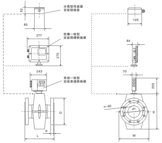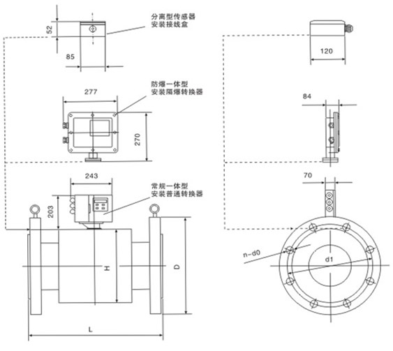 2、DN700~DN1600分体防爆型传感器外形和常规仪表相同。