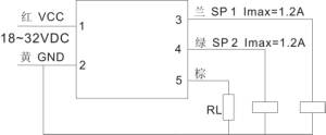 1 红:电源 + 2 黄:电源 -