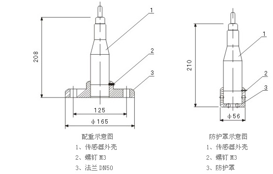 在测量流动性较大的介质时,为防止传感器剧烈摆动,用户可选用配重附件,以起到稳定传感器的作用。配重以法兰形式提供(DN50、PN4.0MPa、GB116.7-88),用户可以用螺栓将其固定于工艺设施。